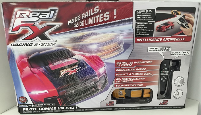 Nous sommes prêts à tester un jeu de course d'un tout nouveau genre : le circuit RealFX. Entre réel et virtuel, il est possible de piloter la voiture par un système d'intelligence artificielle ou bien tout seul comme un véritable pro. La particularité du circuit ? Il ne nécessite aucun rail. Adapté à partir de 8 ans, il est possible de jouer seul ou à plusieurs grâce aux 3 modes proposés, à savoir le mode entraînement, championnat et radiocommandé, et aux accessoires fournis : 2 voitures et 2 manettes. Les enfants pourront même configurer leur circuit comme ils le veulent pour que chaque course ne soit jamais la même !