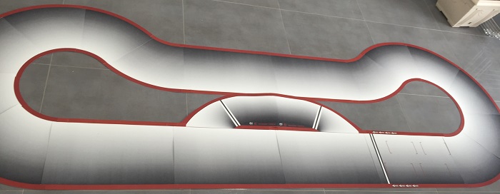 Avant de commencer à utiliser le circuit, il faut évidemment l'assembler. Grâce aux pièces fournies, plus de 40 configurations sont possibles, chacune d'entre elles présentant de nouveaux avantages et défis à relever. Nous avons choisi de reproduire l'un des circuits proposés par le mode d'emploi. Pour assembler, il suffit de relier les éléments les uns aux autres, il faut repérer la fente d'un côté et - comme l'indique la notice - pousser la languette du fragment de piste que vous ajoutez dans la fente. Il faut faire de même pour les deux côtés à emboîter. Pour repérer le sens des pièces, c'est facile, il faut suivre les nuances de gris : le blanc suit le blanc et le gris suit le gris. Une fois terminé, le circuit fait environ 3 m en longueur. Il faut donc prévoir de la place !