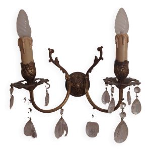 • Applique Ancienne, Laiton Et Pampilles Transparentes Et Rosées - Occasion