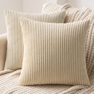 MIULEE Lot de 2 Decorative Housse de Coussin en Velours Côtelé Canapé Taie d'oreiller Douce pour Maison Salon Chambre Lit Clic Clac 40x40 cm Beige (MIULEE HOME, neuf)