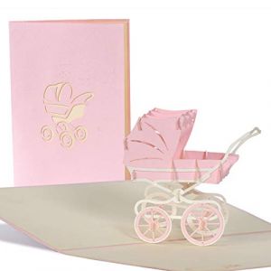 • papercrush® Carte pop-up poussette avec bébé - Carte de naissance 3D pour fille et garçon, félicitations pour bébé, carte de félicitations ou cadeau d'argent pour naissance, faite à la main (papercrush, neuf)