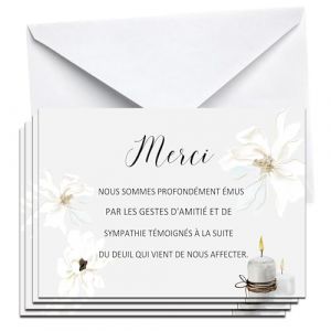 • Lot de 50 Cartes + 50 Enveloppe Blanches - Cartes Remerciement Deuil - Condoléances Décès Obsèques ou Enterrement - Papier Mat de Qualité Format Carte Postale (14,8 X 10,5 cm) - Design Sobre & Élégant (Roxisha, neuf)