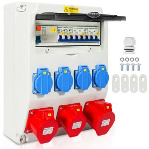 Coffret De Chantier Distributeur mural avec disjoncteur et fi, répartiteur électrique de site à 5 pôles avec 4 prises Schuko et prise cee 16/32 a