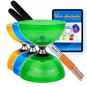 • Juggle Dream Cyclone Quartz Diabolo de Jonglage Set - Pro Diabolo Triple Roulement A Bille + des Diablo Baguettes en Aluminium, et Vidéo d'apprentissage en Ligne (Vert) (Juggle World - Specialist Juggling Store, neuf)