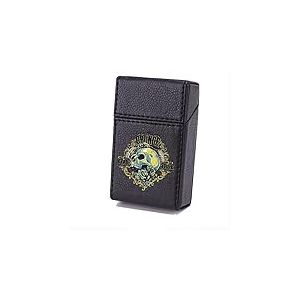 Cokitec Etui Boite en Cuir Paquet De Cigarette Noir Crane Jaune