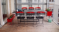 Cette chaise imaginée par Olivier Gence, étudiant designer à l'ENSAAMA reprend de jolies courbes et raconte une belle histoire. La création remporte le concours Fermob (parmi 58 projets) dont l'objectif était de revisiter la chaise Bistro. Pari réussi avec cette chaise qui respecte l'âme populaire de la Bistro en empruntant son nom à Edith Piaf, sans doute la plus parisienne des parisiennes. La chaise est surmontée d'une poignée qui permet de la replier / déplier facilement.
