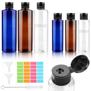TXXATX 6 Pièces Flacon Voyage Flacon Voyage Avion 100 ml Flacon Vide Voyage 250 ml Contenant Voyage Transparent Bleu Marron avec Entonnoir Réutilisable Flacon Avion pour Shampoing Gel Douche Travel (JiaFangTrading, neuf)