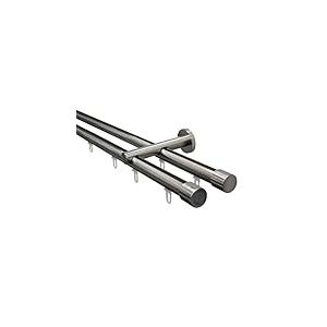 GARDINIA Set de tringles à Rideaux Isa, 2 Rails avec roulement intérieur II, Garniture complète avec 2 tringles, Supports, Embouts et glisseurs, Ø 20 mm, 220 cm, Aspect INOX