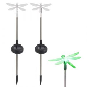 • Fdit Lot de 2 lumières de pelouse à énergie solaire libellule solaire LED lumière de pelouse multi-couleur changeante pieu LED pour jardin patio pelouse décor (Aqur2020, neuf)