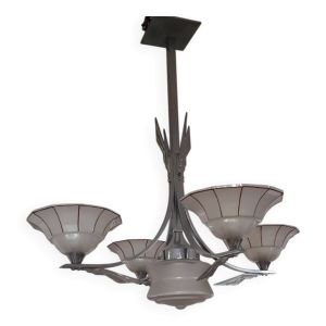 • Ancien Grand Lustre Plafonnier Fer Forgé Art Populaire Déco Rétro Antique France - Occasion