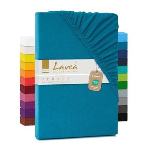 • Tianyi-Greenline Lot De 2 Draps-Housses En Jersey De Qualité Supérieure 100 % Coton - Bleu - 90-100 X 200 Cm Jusqu'à 30 Cm - Convient Également Pour Lit À Sommier Tapissier - Neuf