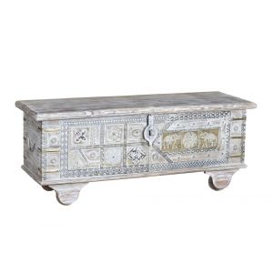 Coffre en bois de manguier et laiton coloris blanc vieilli - Longueur 88 x Profondeur 40 x Hauteur 45 cm