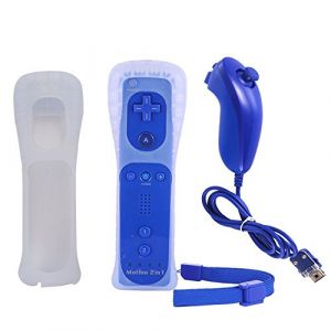 • Manette de Jeu Motion Plus pour Wii et Wii U, Accélérateur de Jeu Télécommandé Elégant pour Nintendo Wii et Wii U avec Housse de Protection (Bleu foncé) (ShengDianZiShangWu, neuf)