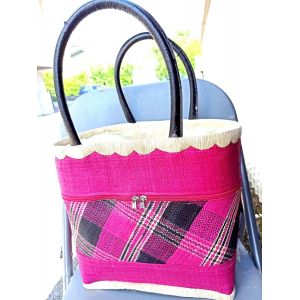 • Sac à main en paille femme,sac panier,sac de plage d'été en paille grand avec fermeture éclair,sac en paille fait à la main avec bandoulière en cuir,sac à bandoulière tissé pour beac - Neuf