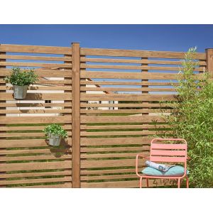• Panneau droit de clôture Darling en bois traité marron ép.40 mm L. 90 x H.180 cm