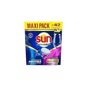 Sun Pastilles Lave-Vaisselle Absolu Tout-en-1 Brillance - 42 capsules - tablettes imbattables sur les taches tenaces - 4x plus d'éclat