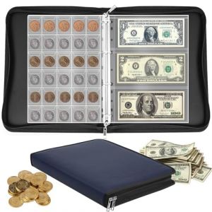 • Yunkctuk Ignifugé Album de Collection de Pièce de 2 euros, Classeur Numismatique Rangements de 24 Pages pour 300 pièces et 36 billets pour Euros, Dollars, Livres Sterling, Pence (Bleu) (Abing—EUR, neuf)
