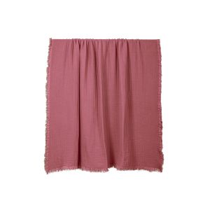 • Plaid Vanly Haomy en coton lavé à franges - 13 couleurs harmonieuses, Bois de rose / 130x180 cm