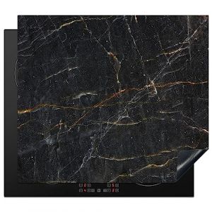 Protège-plaque à induction - Plaque Protection Vitrocéramique Induction - Vinyl - Noir - Marbre - Luxe - Or - 59x52 cm - Couvre Plaque de Cuisson - Accessoires de Cuisine (MuchoWow GmbH, neuf)