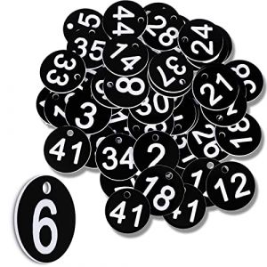 • Étiquette de Numéro Noire 1-50 Jetons Numérotés en Plastique Numéro de Table en Plastique Étiquette Numérotée Porte-Clés avec Étiquette de Clé pour ID Vestiaire Bagage Sac Casier Dortoir (Yuenwing, neuf)