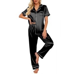 • Nanxson Femmes Satin Pyjama Set Deux Pièces Pyjama Manches Courtes Pyjama avec Long Pyjama Pantalons Ensemble Soft Casual Wear(L, Noir) (Nasisa, neuf)