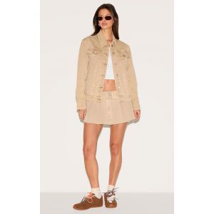 • Femme Mini-jupe en jean côtelé sable délavé plissée à taille mi-haute | Taille 44 - Taille 44