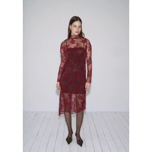 Onsoyours Robe Décontractée Femme Robe Vintage Chemise Manches Longues en Tulle Robe Moulant Sexy Dentelle Dos Nu Midi Dress Élégante Robe De Cocktail Soirée G Vin Rouge M (Zeigood Mode, neuf)