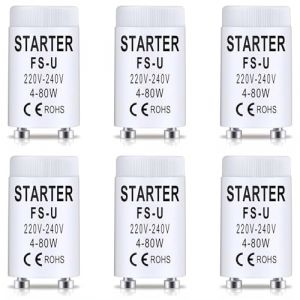 • 6 Pièces Starter Neon 4-80W, Starter Tubes Fluorescents 220-240V, Démarreurs de Tube Fluorescent pour Lampes UVC D'aquarium Lampe au Néon (KangBinHuiStore, neuf)