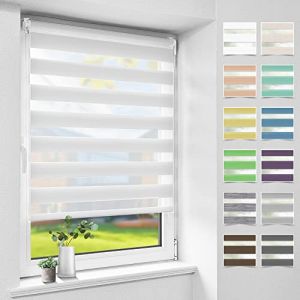 • Store Enrouleur Jour Nuit De Double Tissu, Store Jour Et Nuit Sans Perçage, Accessoires D'installation Inclus Pour Fenêtre Ou Porte, 45l X 120l Cm, Blanc - Neuf