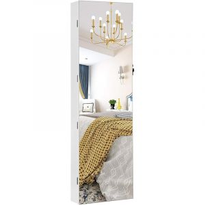 • Songmics Armoire à Bijoux avec Long Miroir,Coffre à Bijoux avec 6 Lampes LED, Suspendue à la Porte ou fixée au Mur, Grande capacité, 2 Tiroirs, Blanc JJC99WT