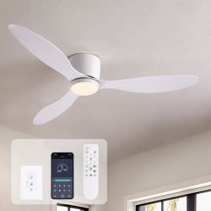 blendend Ventilateur DC 48 W blanc avec 3 pales lumière réglable 3000-4000-6000 K, 4800 lm, 6 vitesses, avec télécommande, mémoire et minuteur. Dimension : 91d.