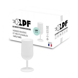 • LPF LE PETIT FOURNISSEUR - Lot de 10 Verres à Vin réutilisables 12cl (18cl max) - Polypropylène plastique alimentaire rigide - Verre à pied à eau et vin - Compatible lave-vaisselle - Couleur Blanche (Le Petit Fournisseur, neuf)