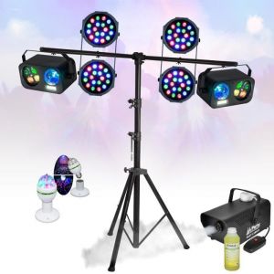 Pack PARTY LIGHT & SOUND - 4 Projecteurs RGB 2 Jeux Lumières Machine Fumée Liquide Soirée L Voir site | ![]()