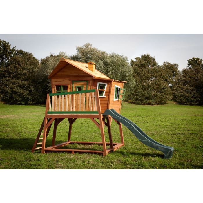 Cabane en bois haute et toboggan pour enfant Marron/Vert - Max L Voir site | ![]()