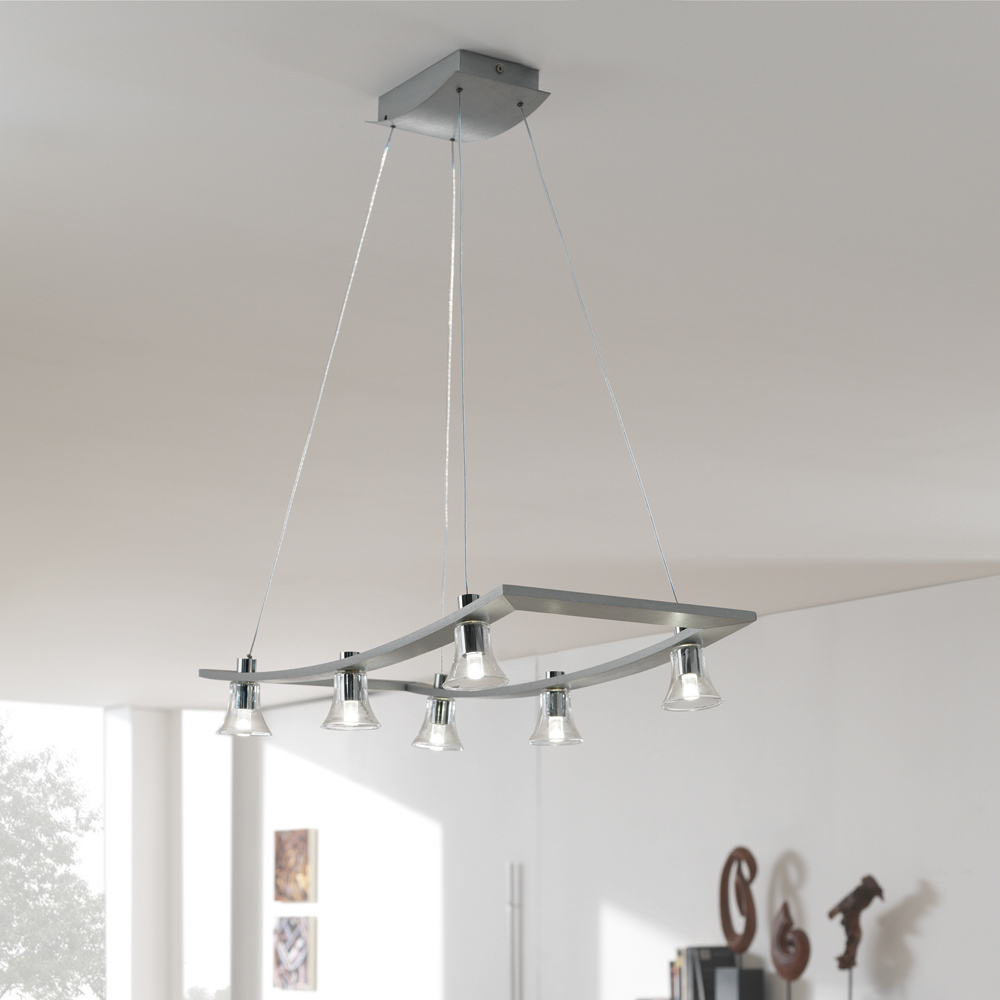 Lampe à suspendre 6 flammes LED Lampe de table Suspension lampe de salon, acier inoxydable brossé, verre, 6x 5W 6x200lm blanc chaud, LxH 71 x 160 cm,