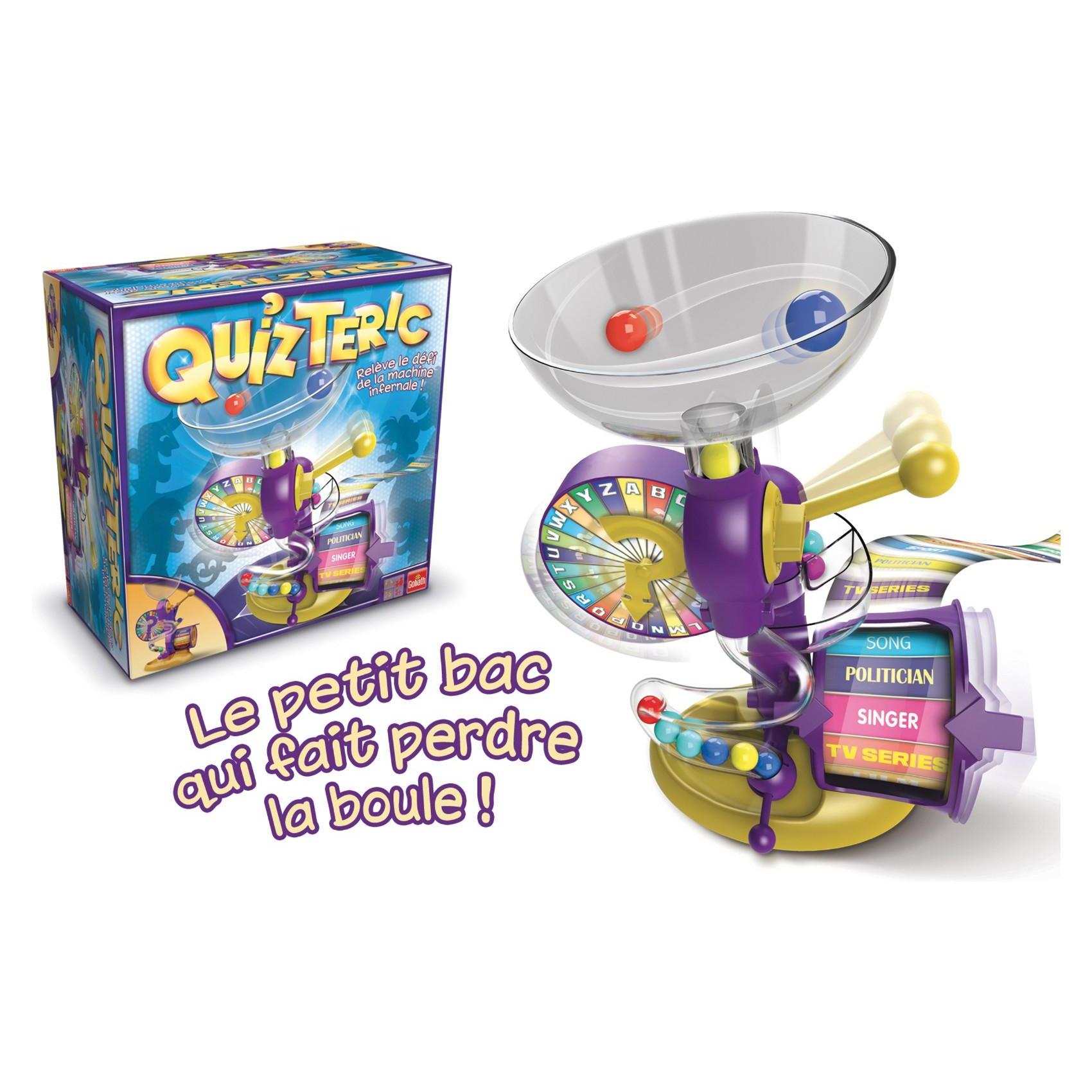 De 2 à 4 joueurs, il va falloir relever le défi du Petit Bac. Jeu incontournable en vacances, la marque Goliath a quelque peu modifié le concept original afin de l'adapter aux enfants et de le rendre encore plus amusant. Le plateau de jeu prend la forme d'une quiz-machine infernale avec une roulette comportant les 26 lettres de l'alphabet. 5 grilles de thème recto-verso seront à inclure ainsi qu'une grille vierge qu'il est possible de compléter soi-même. Le coffret est complet avec 24 billes réparties en 4 couleurs.