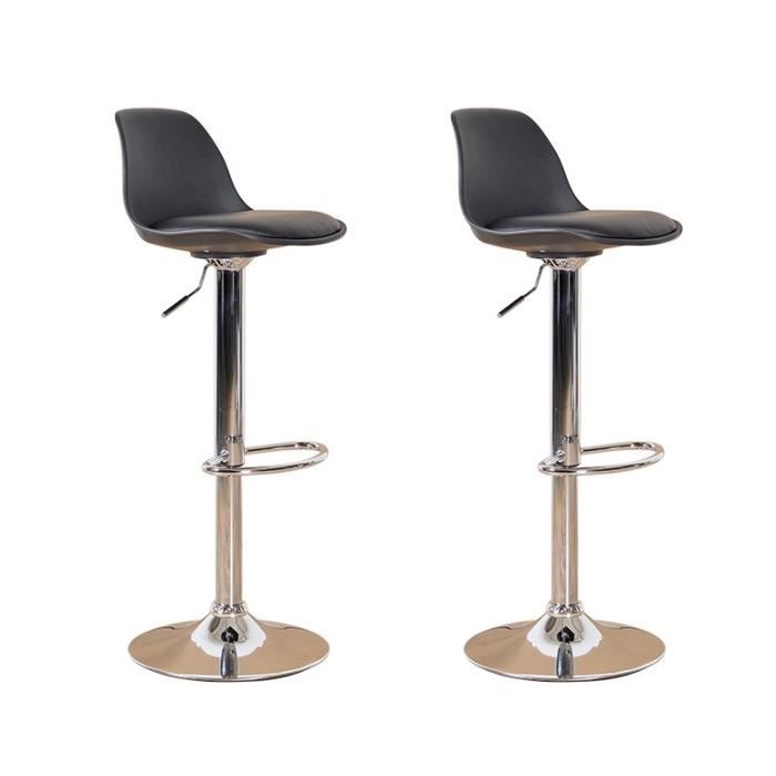 NEO Lot de 2 tabourets de bar - Simili noir - Contemporain - L 38 x P 425 cm