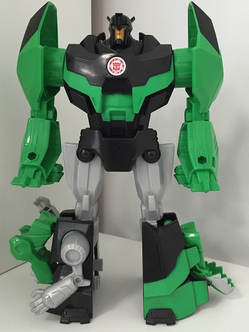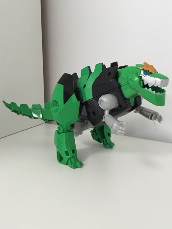 Cette fois-ci, le robot ne va pas se transformer en véhicule mais en dragon ! Il s'agit de Grimlock, le leader fort et puissant des Dinobots. Lorsqu'il est en mode robot, on ne peut pas soupçonner sa nouvelle forme, celui-ci est vraiment bien réalisé au niveau du mécanisme. Nous avons trouvé que c'était celui-ci, le plus "impressionnant" en terme de transformation et particulièrement pour un enfant de 6 ans.