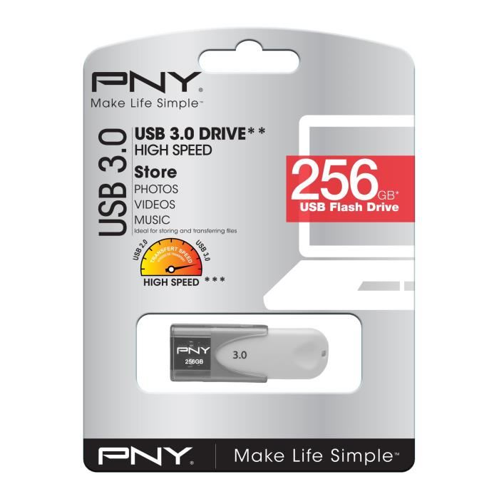 PNY ATTACHE 4 lecteur USB flash 256 Go USB Type-A 3.2 Gen 1 (3.1 Gen 1) Gris, Blanc - Neuf L Voir site | ![]()