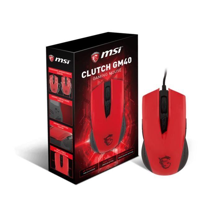 MSI CLUTCH GM40 - Rouge - Souris Gaming filaire Ambidextre filaire / Optique 5000dpi / 8 boutons / USB (Dealon, neuf) L En stock | ![]()