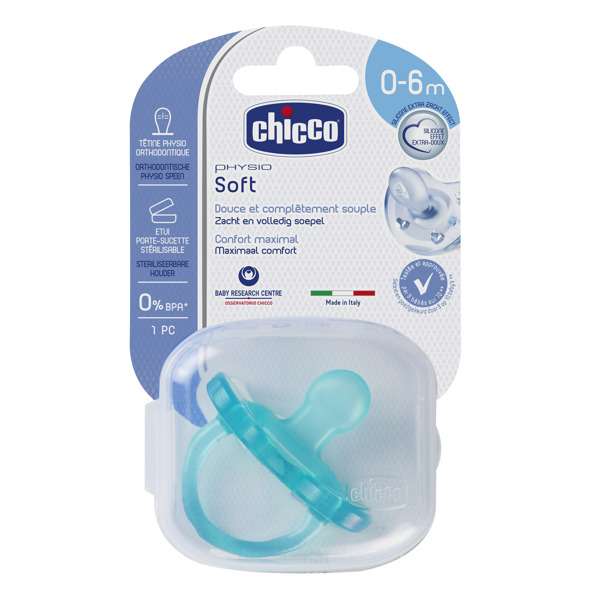 Chicco Physio Soft Sucette en Silicone Bleu 0-6 Mois (AR First Aid, neuf) L En stock | ![]()