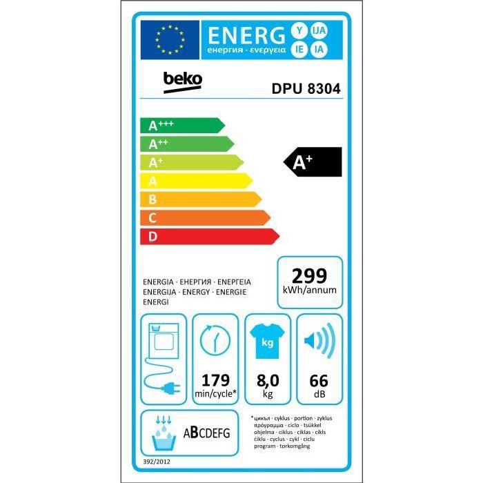[Occasion] Beko Green line DPU8304 - Sèche-linge - largeur : 59.5 cm - profondeur : 59.8 cm - hauteur : 84.6 cm - chargement frontal - blanc L Voir site | ![]()