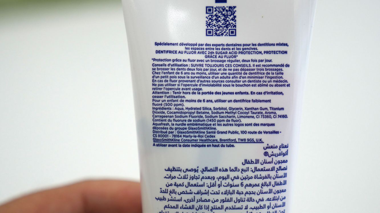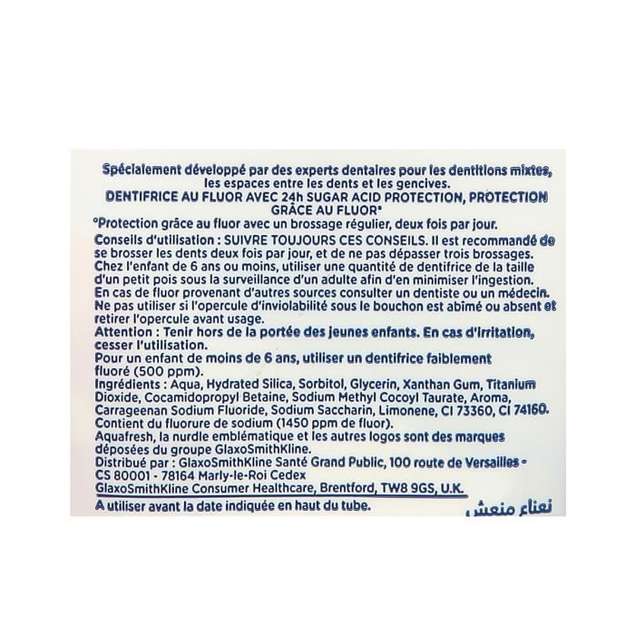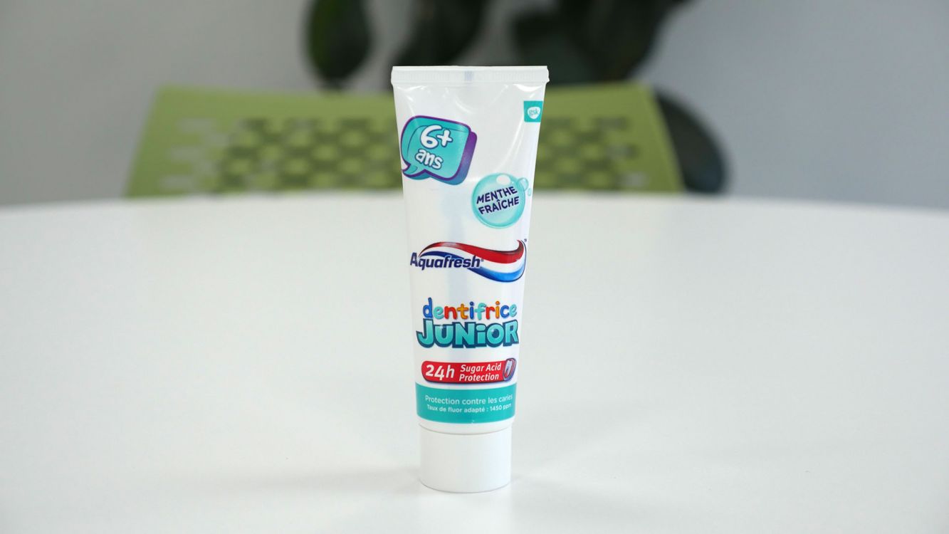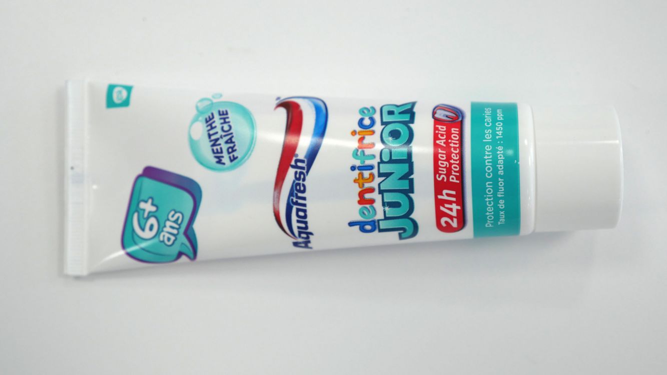 Ce dentifrice junior Aquafresh au goût de menthe permet de protéger les dents des enfants de plus de 6 ans. Son taux de fluor est équivalent à 1450 ppm et il a spécialement été développé par des experts dentaires pour les dentitions mixtes, les espaces entre les dents et les gencives. Il assure également une protection 24H contre les attaques acides. Loane (8 ans) a testé !