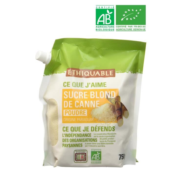 Ethiquable Sucre Blond de Canne Poudre Paraguay Doypack Bio et Equitable 750 g Producteurs Paysans (NOS MEILLEURES COURSES, neuf)