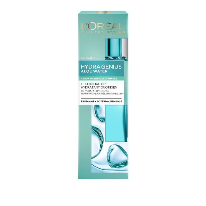L'Oréal Paris - Soin Liquide Hydratant Visage - Hydratation 72H & Effet Matifiant - À l'Eau d'Aloe et à l'Acide Hyaluronique - Peaux Normales à Mixtes - Hydra Genius - 70 ml (C ... L En stock | ![]()