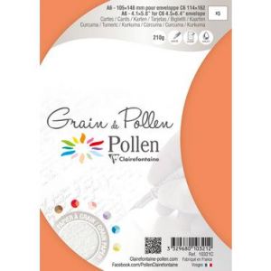 Clairefontaine 10321C - Carte Grain de Pollen 105x148, 210 g/m², coloris curcuma, en sachet cellophané de 5
