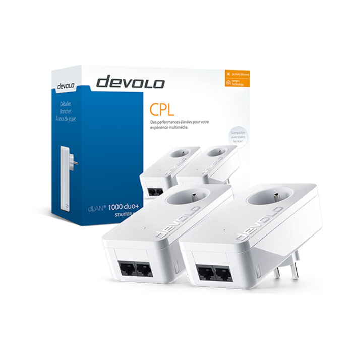 Devolo 8112 dLAN 1000 Duo+ kit de démarrage, CPL internet (1000 Mbit/s via la Prise de Courant, 2 Ports Ethernet, 2 Adaptateurs CPL, Prise de Courant Intégrée, Adaptateur Résea ... L En stock | ![]()