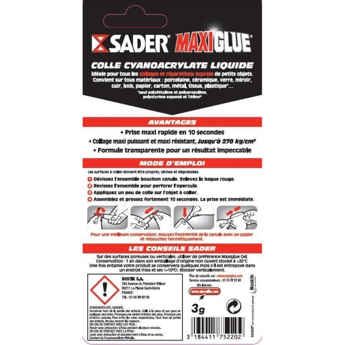 Colle cyano Maxiglue universel liquide 3g SADER