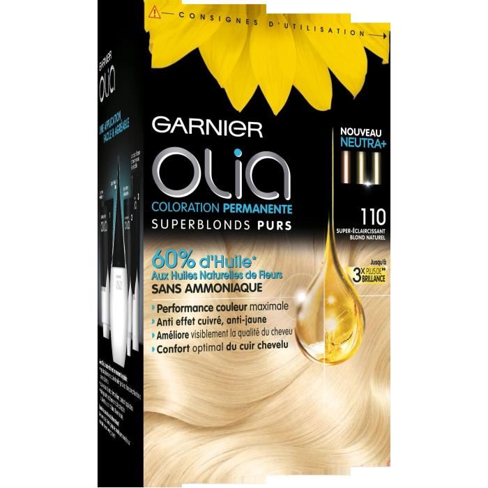 Garnier Coloration Permanente - Sans Ammoniaque - Aux Huiles Naturelles de Fleurs - Superblonds Purs - Blond Naturel (110) - Olia