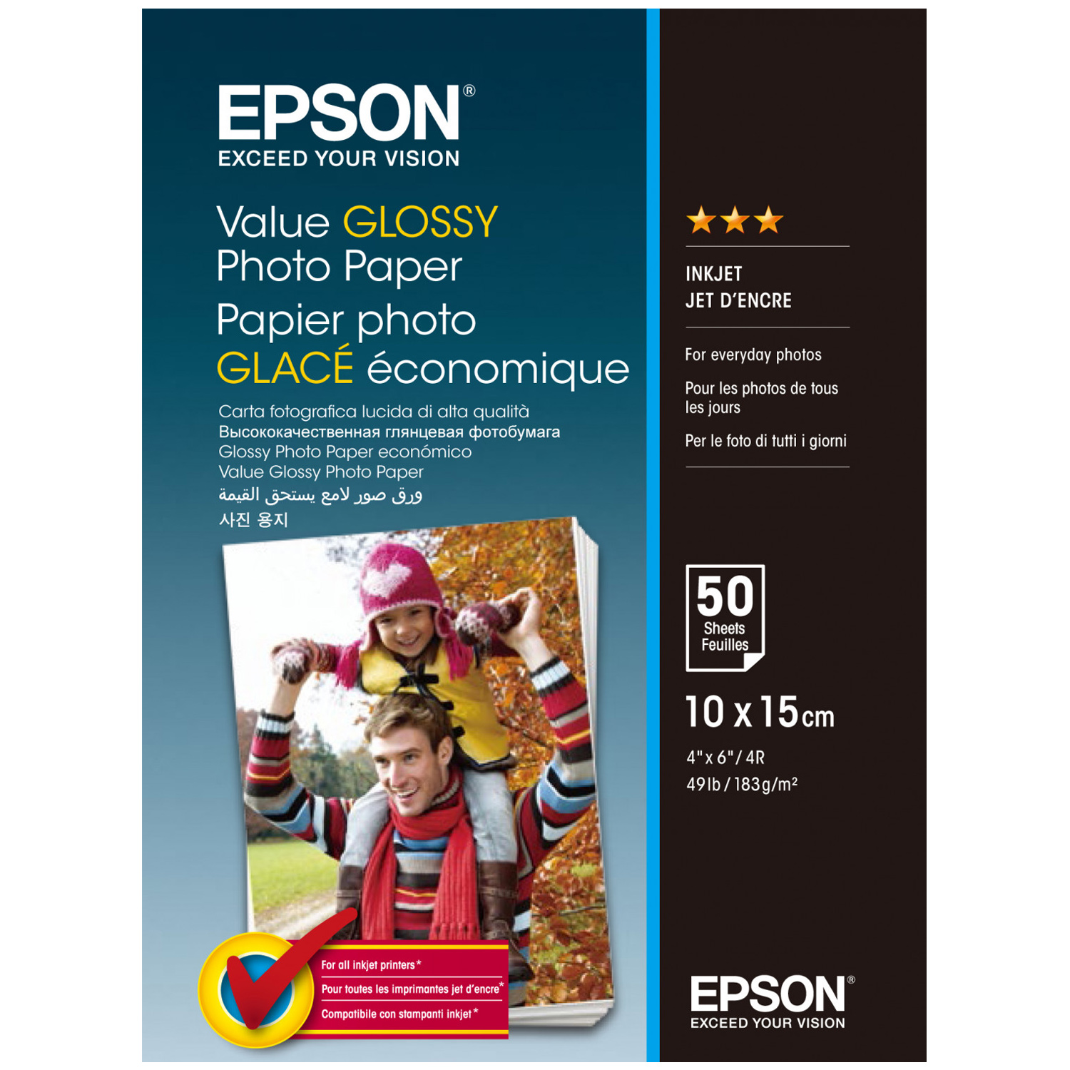 Epson Value Glossy Photo Paper - 10x15cm - 50 Feuilles, Gloss, 183 g/m², 10x15 cm, Office printing, calendrier, Photo collage, Photo gifts, Photo, Car